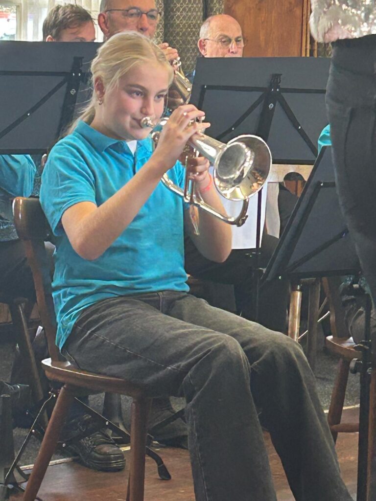 Een bijzonder moment was er voor Sophie Oude Maatman, die werd gehuldigd voor het afronden van haar AMV-traject. Ze gaat verder op trompet – en gezien haar optreden die avond kunnen we alleen maar zeggen: een potentieel aanwinst voor het orkest!